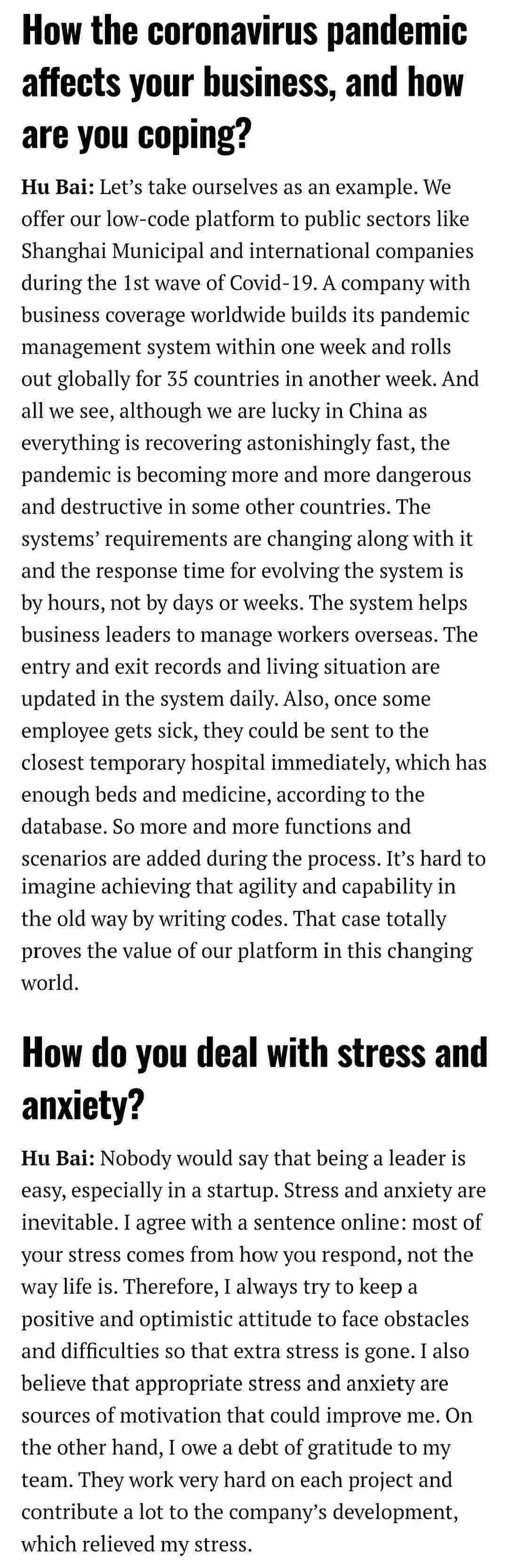 2021年年初,,,爱湃斯科技CEO胡柏受邀接受法媒Startup.info的专访,,,与Startup info的读者分享了自己的创业经历、、以及低代码平台美团钱包商家版的创新之处。。。